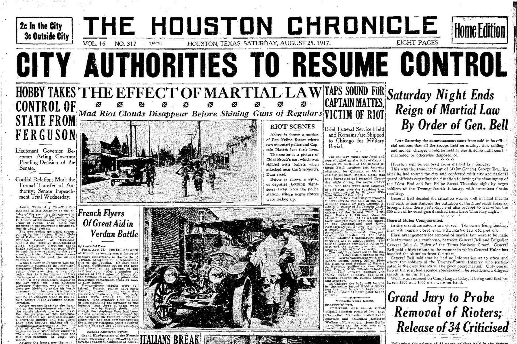 Today In Houston History Aug 25 1917 Martial Law Lifted Following Houston Riot
